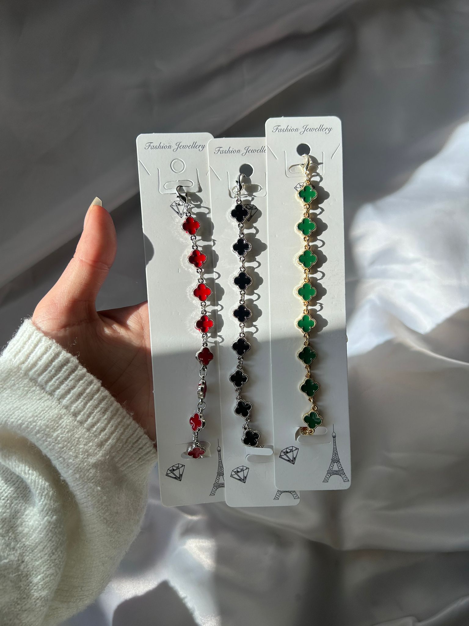 Şıklığın ve zarafetin sembolü yonca bileklikler, canlı renk seçenekleriyle hem günlük kullanım hem de özel kombinler için mükemmel bir tamamlayıcıdır.